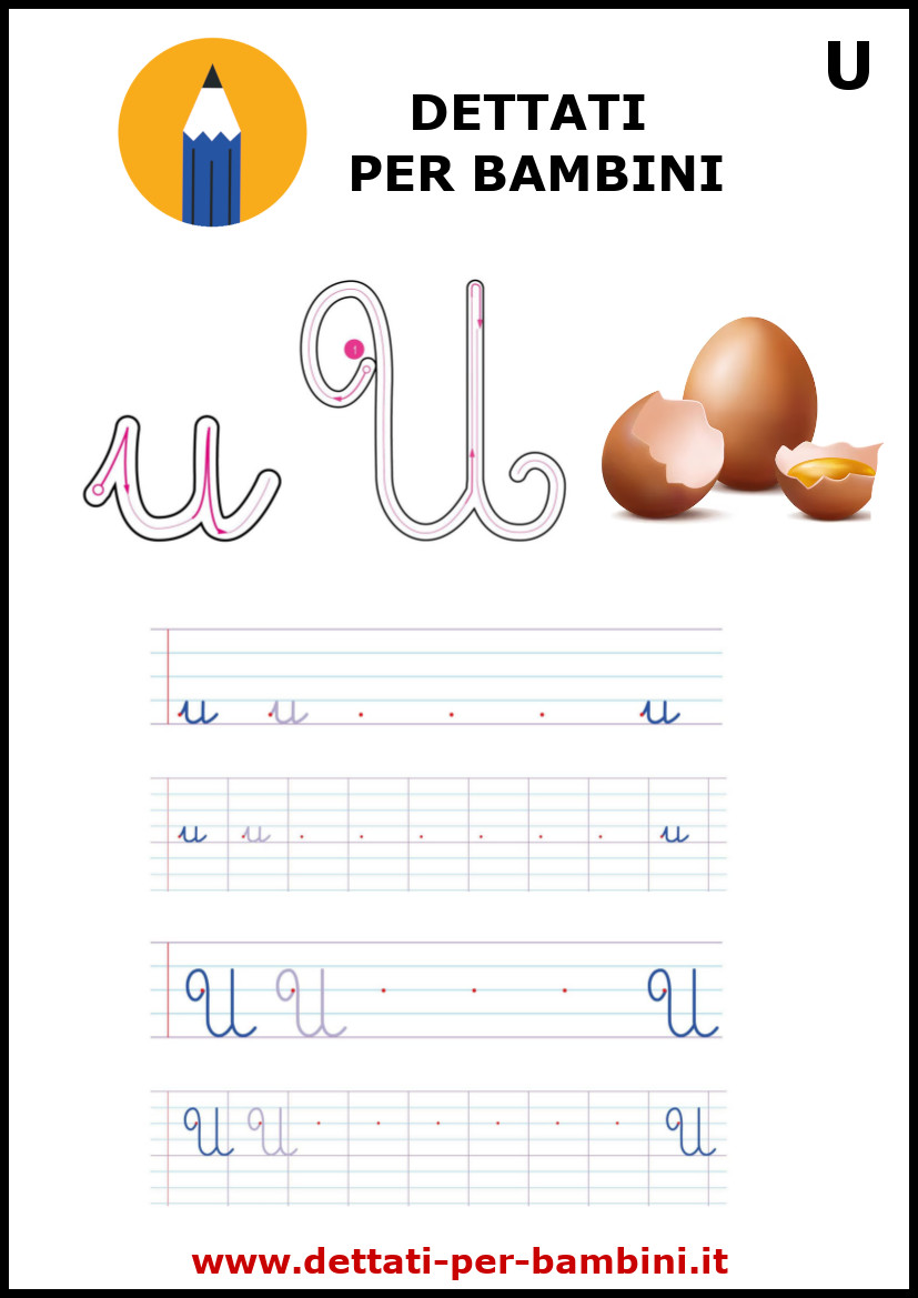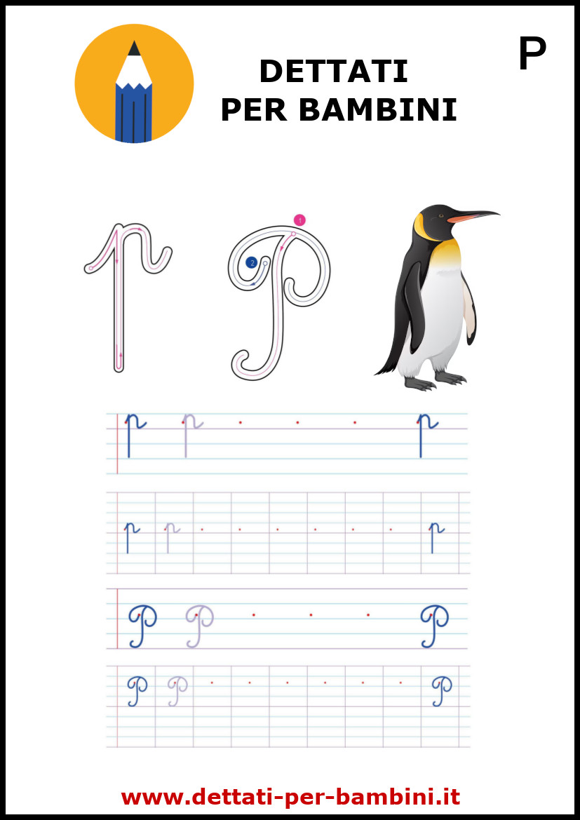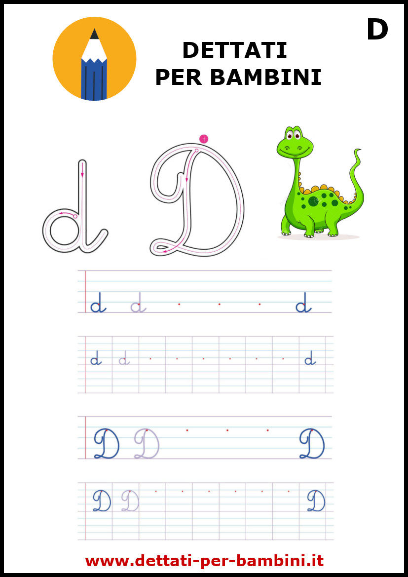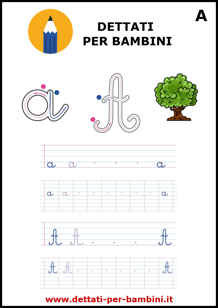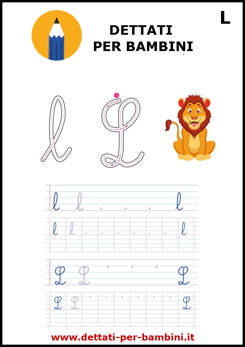 - Modelli di lettere in maiuscolo e minuscolo, che i bambini devono copiare più volte.