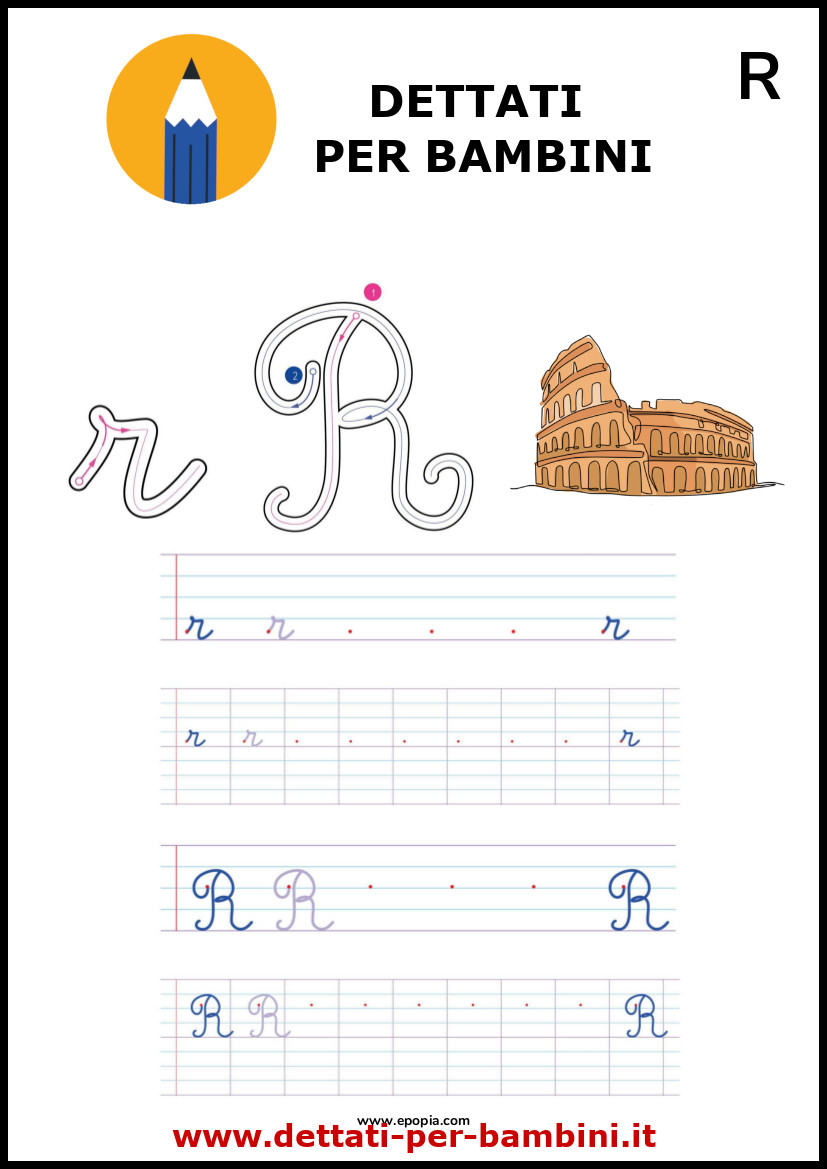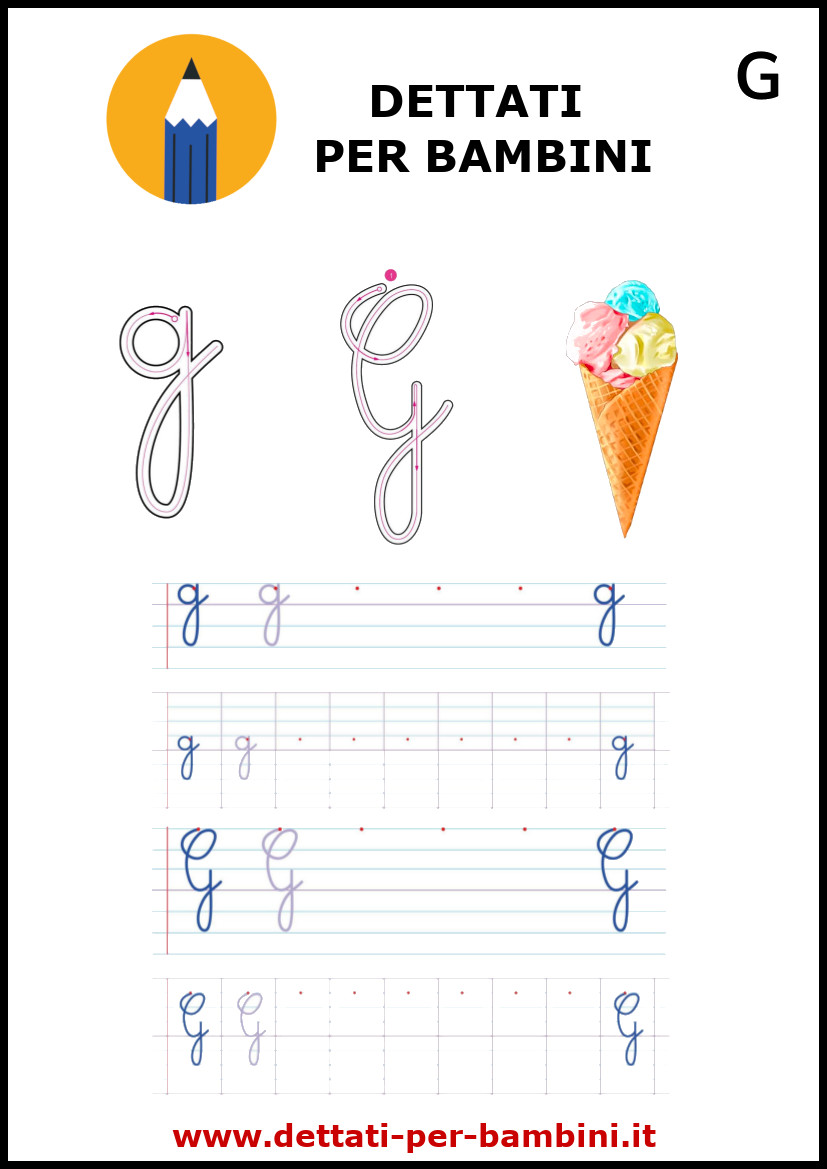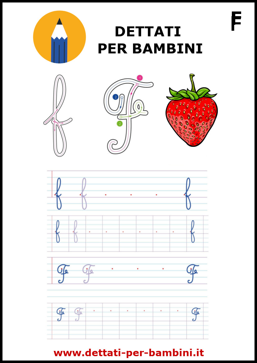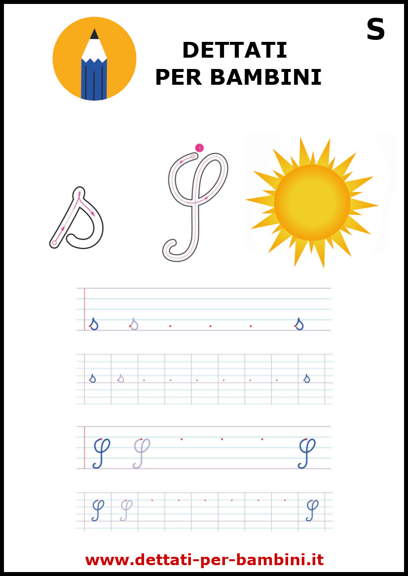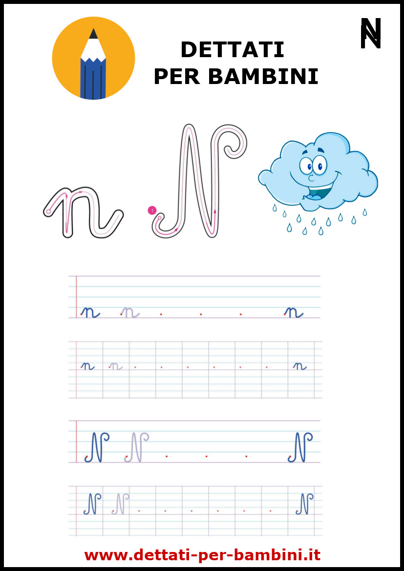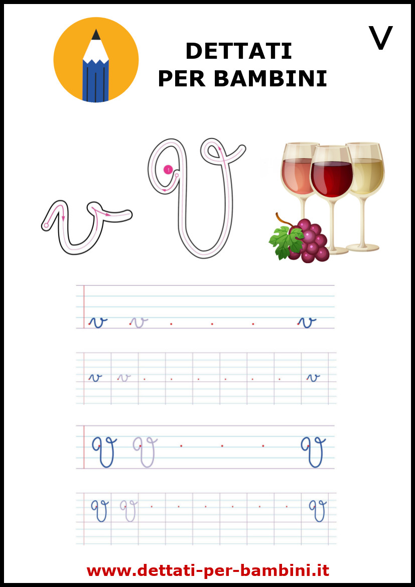 - Modelli di lettere in maiuscolo e minuscolo, che i bambini devono copiare più volte.
